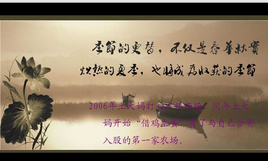 4、鸡蛋品牌土大妈2007年5月,CCTV《致富经》栏目专程到土大妈公司养殖基地进行为期七天的采访,栏目播出后,在全国蛋品行业引起极大的反响。